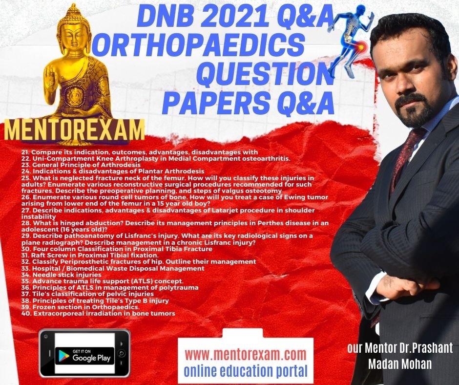 DNB 2021 Q&A ORTHOPAEDICS QUESTION PAPERS Q&A